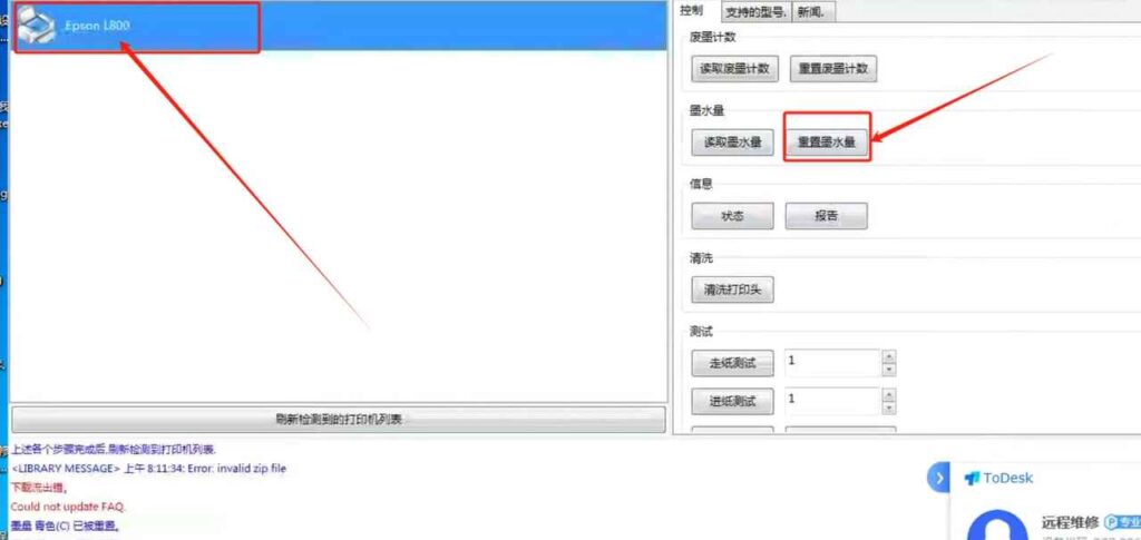 爱普生L800墨水量重置与加墨避坑指南——远程1键校准,告别手动误操作